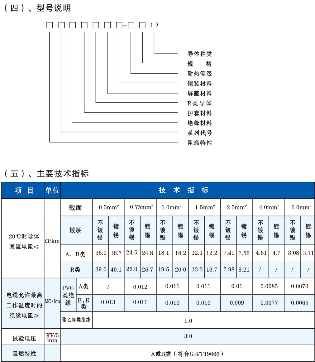 控制電纜 型號說明 主要技術(shù)指標(biāo)